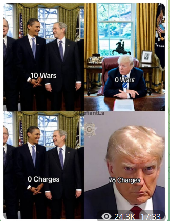 Trump 4 år, inga krig. Sedan 4 år med Biden och krig och oroligheter utbryter. Efter Trumps valseger 5 nov börjar fredsamtal att spira. Då ökar Bidenadministrationen och andra västländer sina försök att utöka kriget. Kan det bli mer uppenbart?